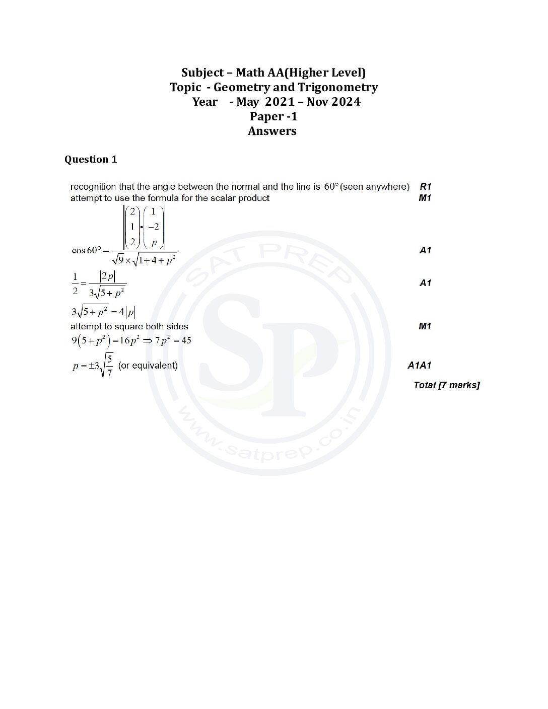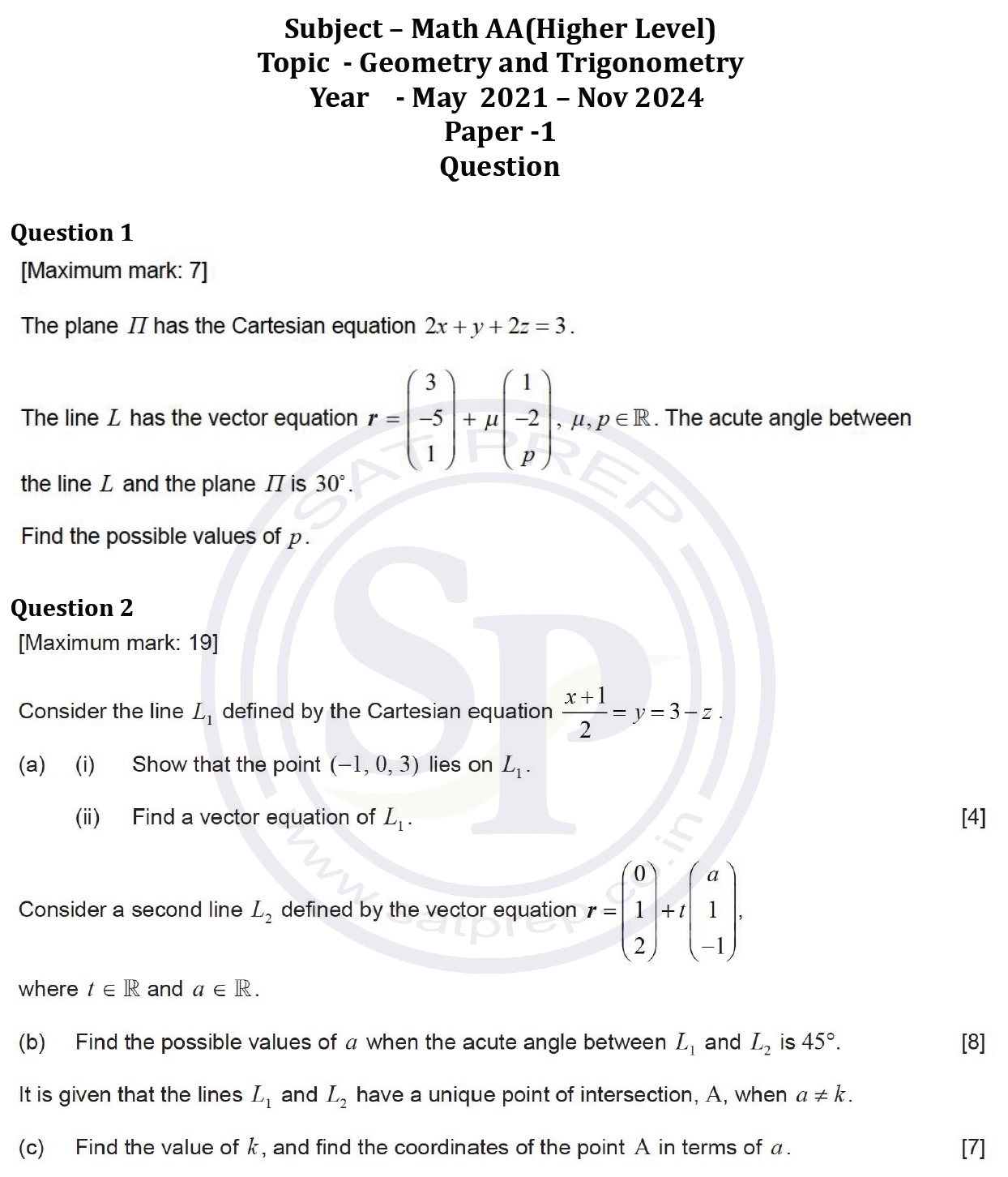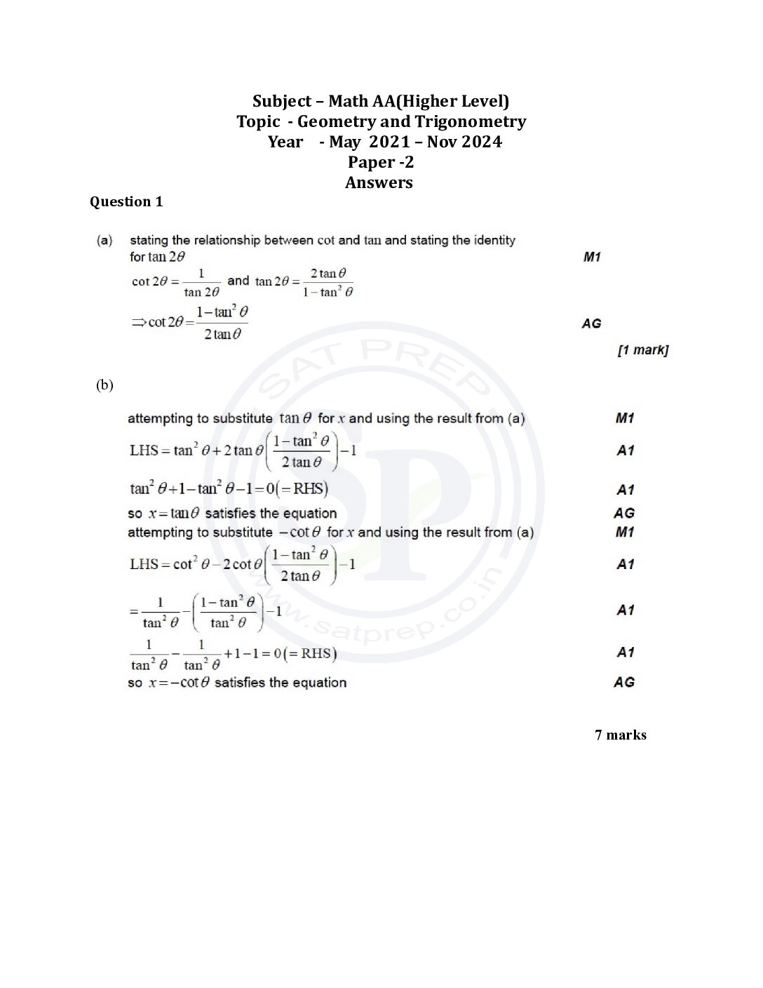 Topic wise IBDP Math AA HL Past Paper 1:...