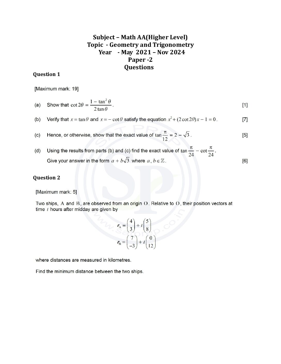 Topic wise IBDP Math AA HL Past Paper 2:...