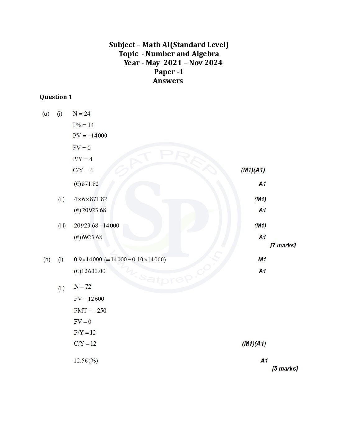 Topic wise IBDP Math AI SL Past Paper 1 ...