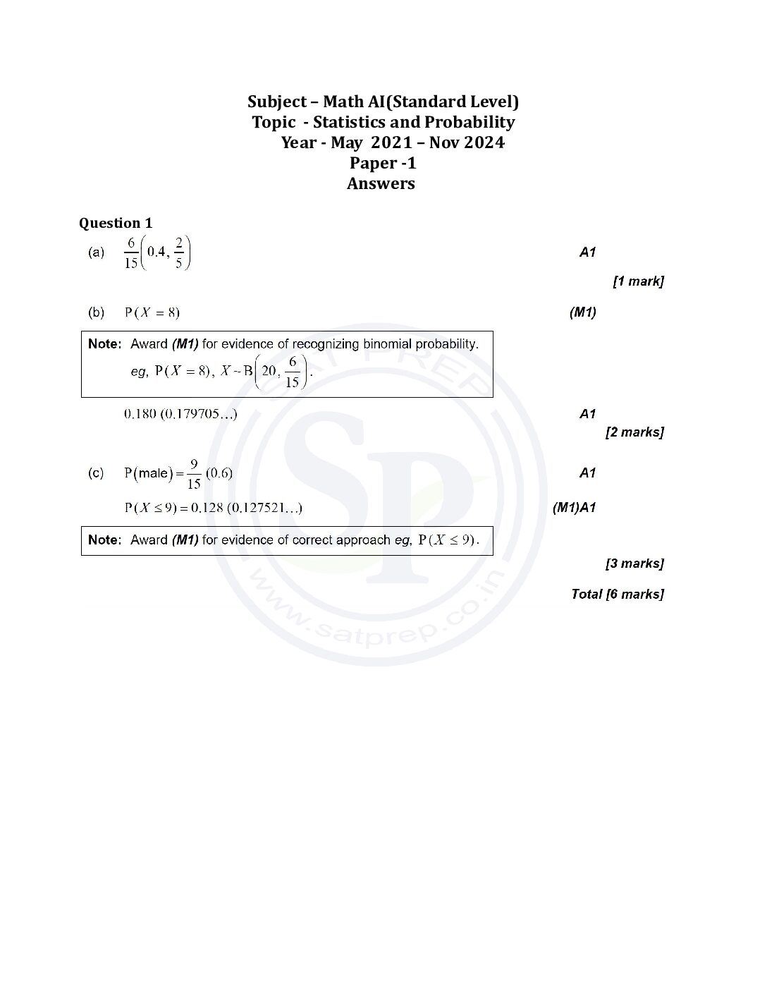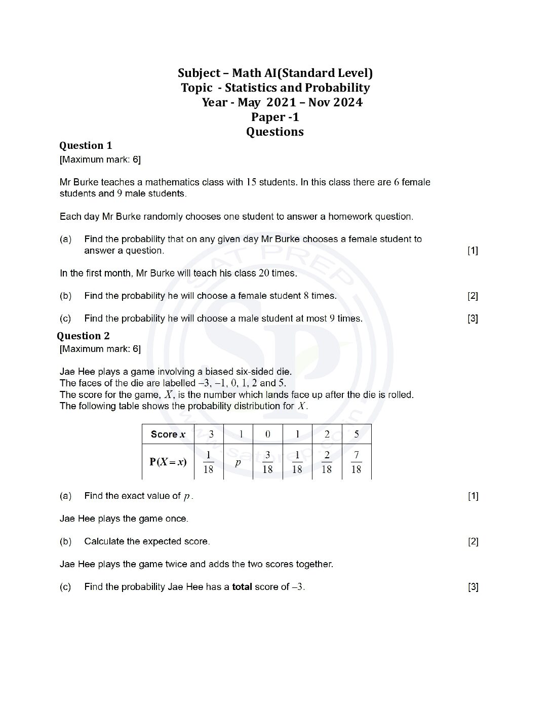 Topic wise IBDP Math AI SL Past Paper 1:...