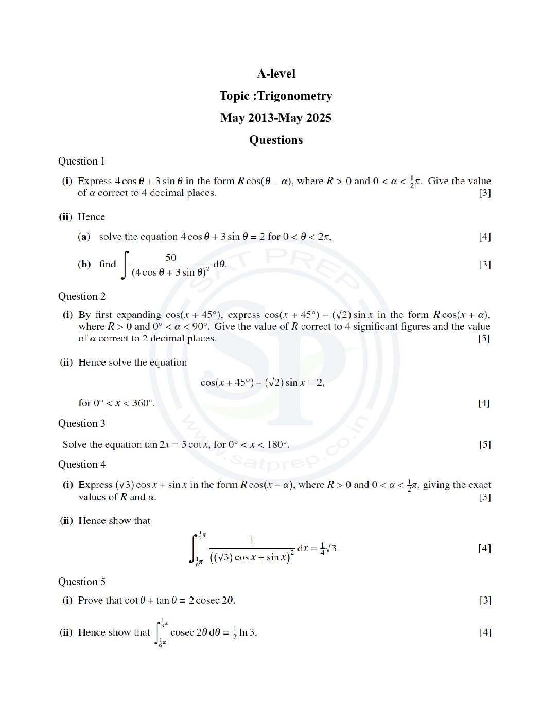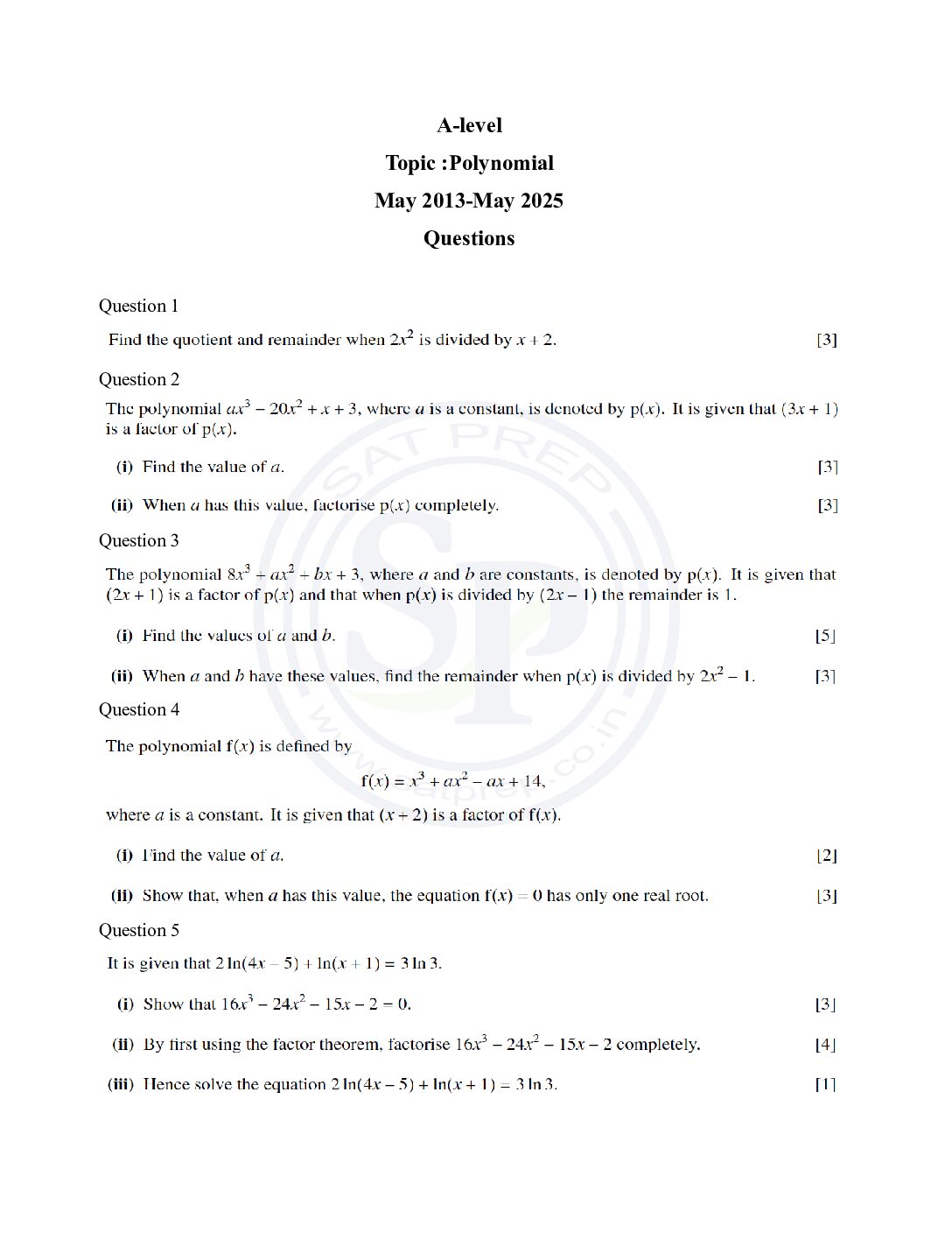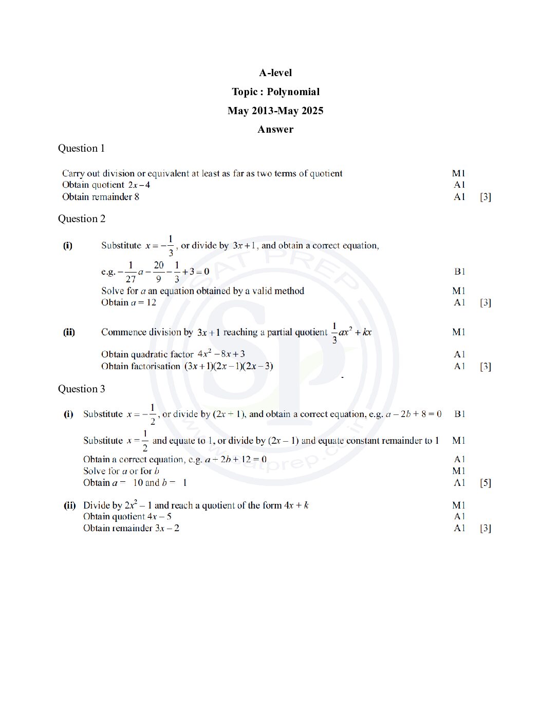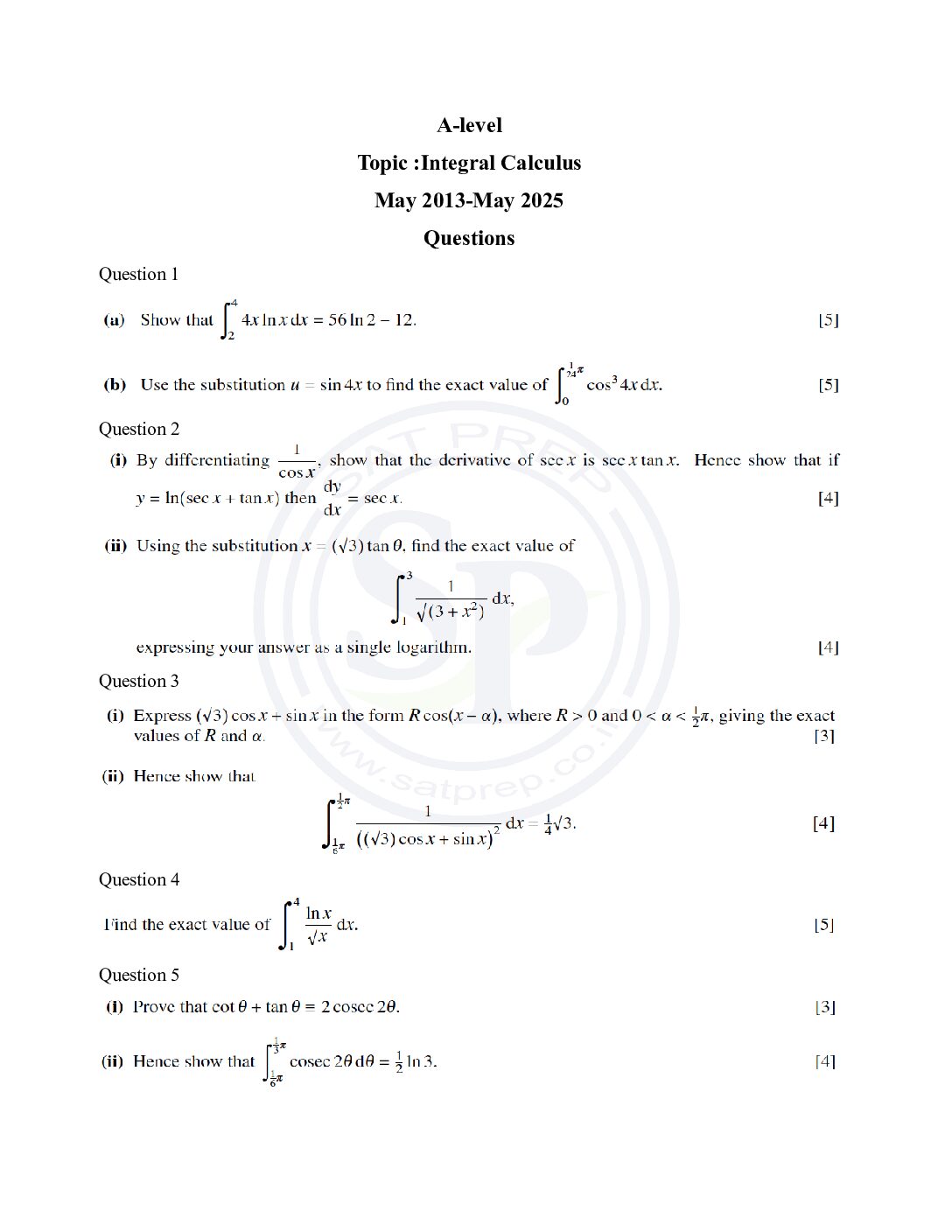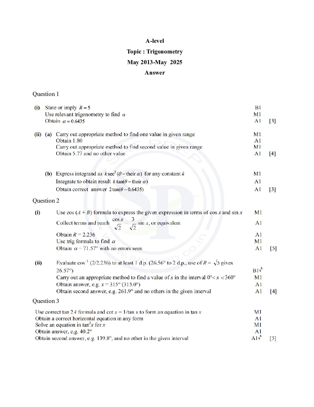 Topic wise A-Level Pure Math Past Paper ...