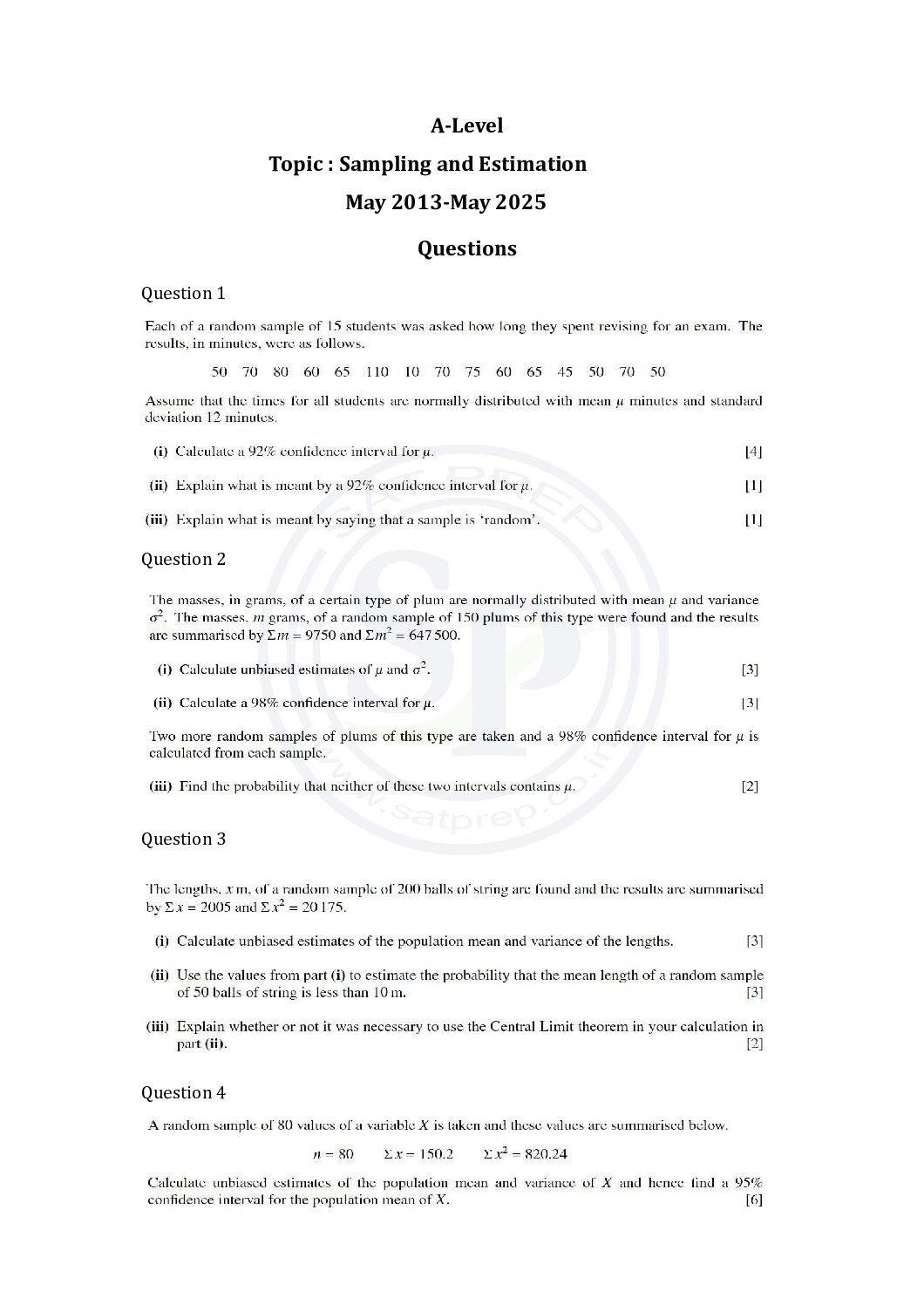 Topic wise AS-Level Statistics Past Pap...