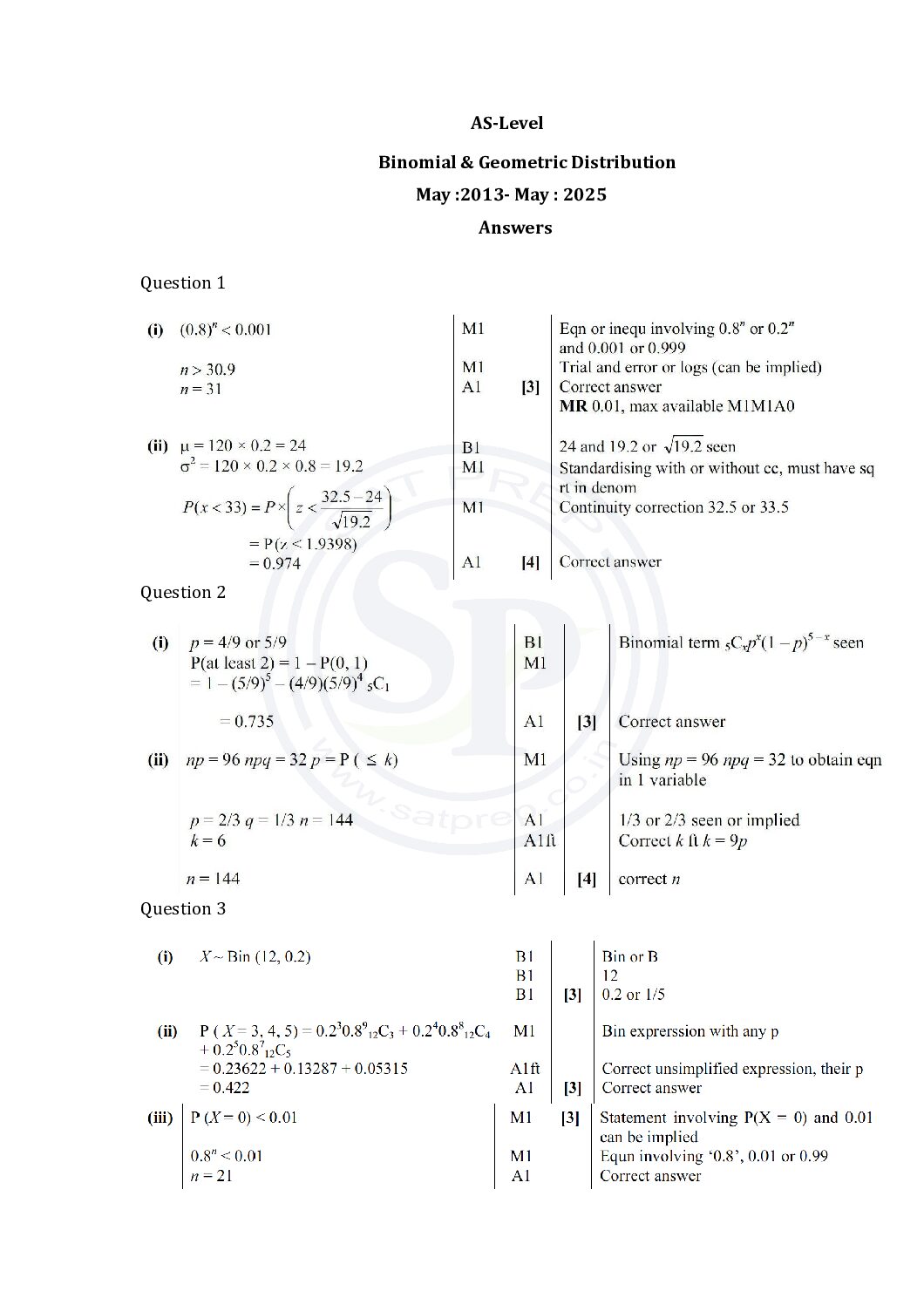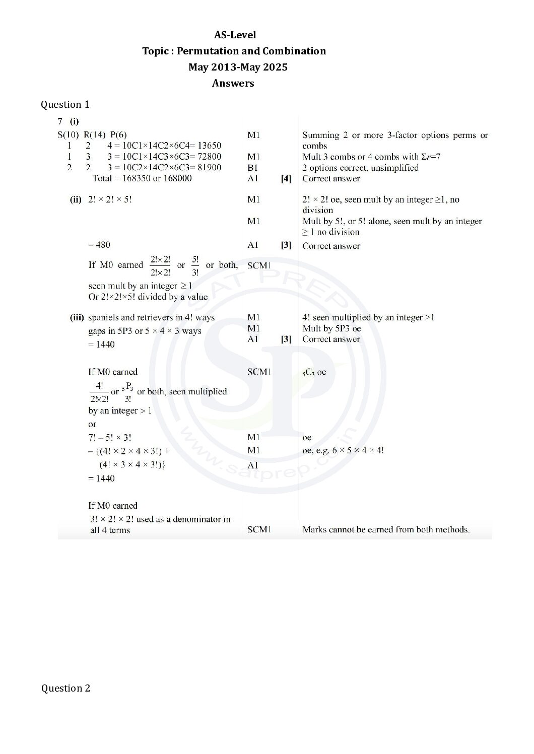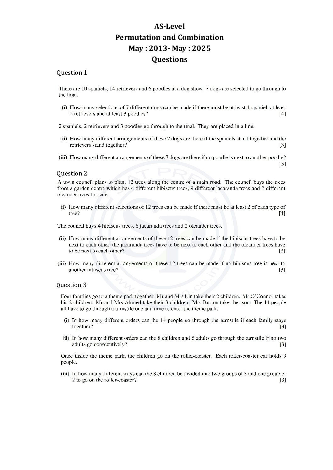 This post is about solution of questions of permutation and combination . This topic is from AS-level past papers. In this post questions are from May 2013 to May 2025 paper. By this post students will come to know variety of questions asked in previous year papers. www.cie.org.uk t