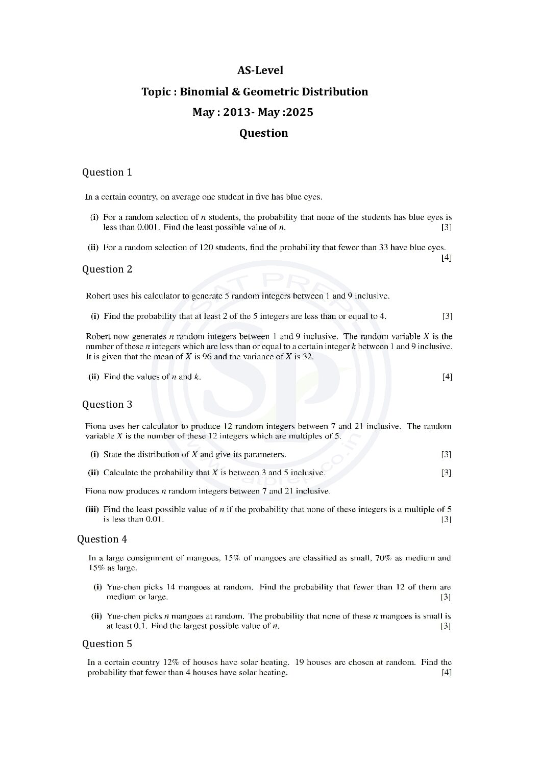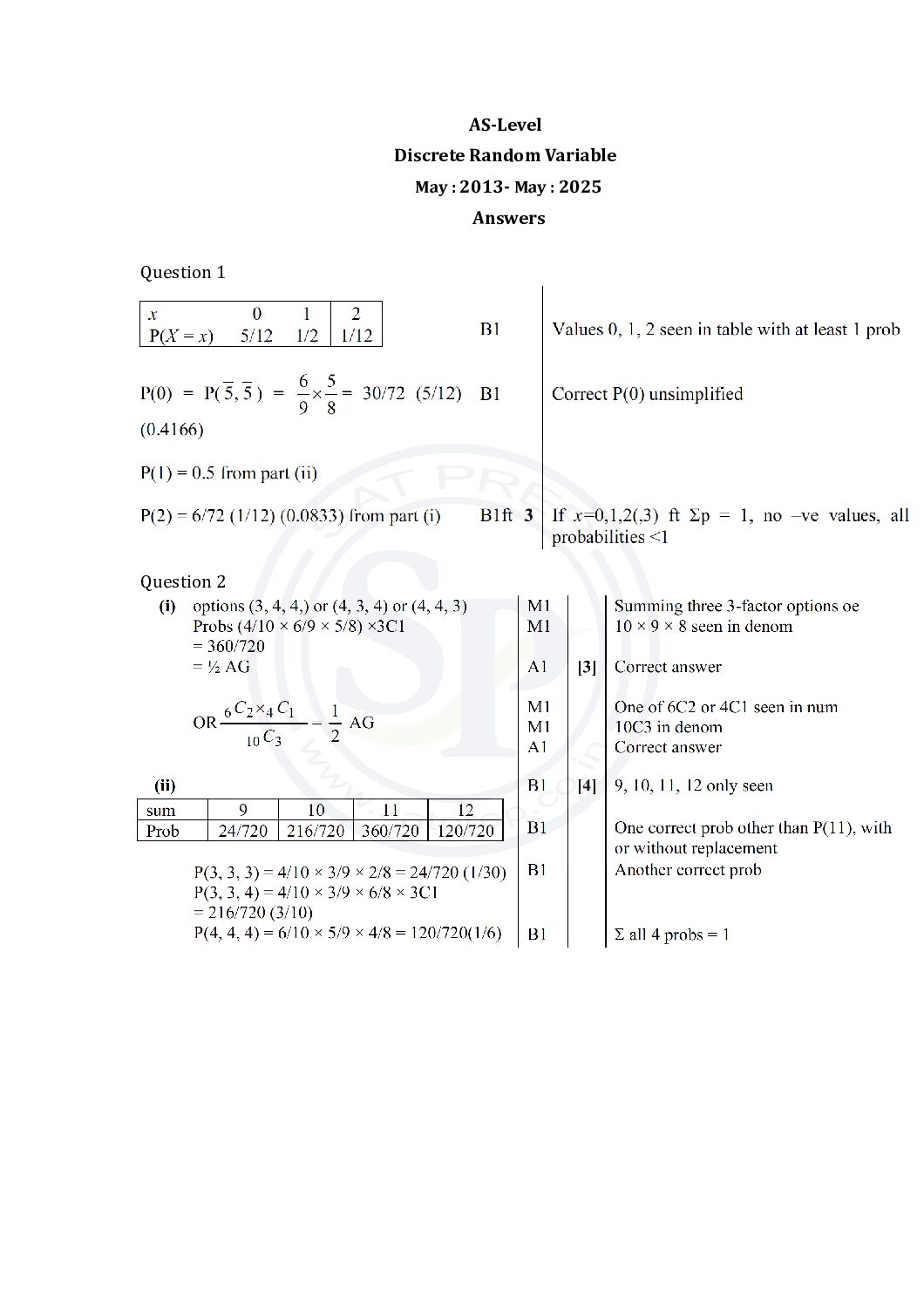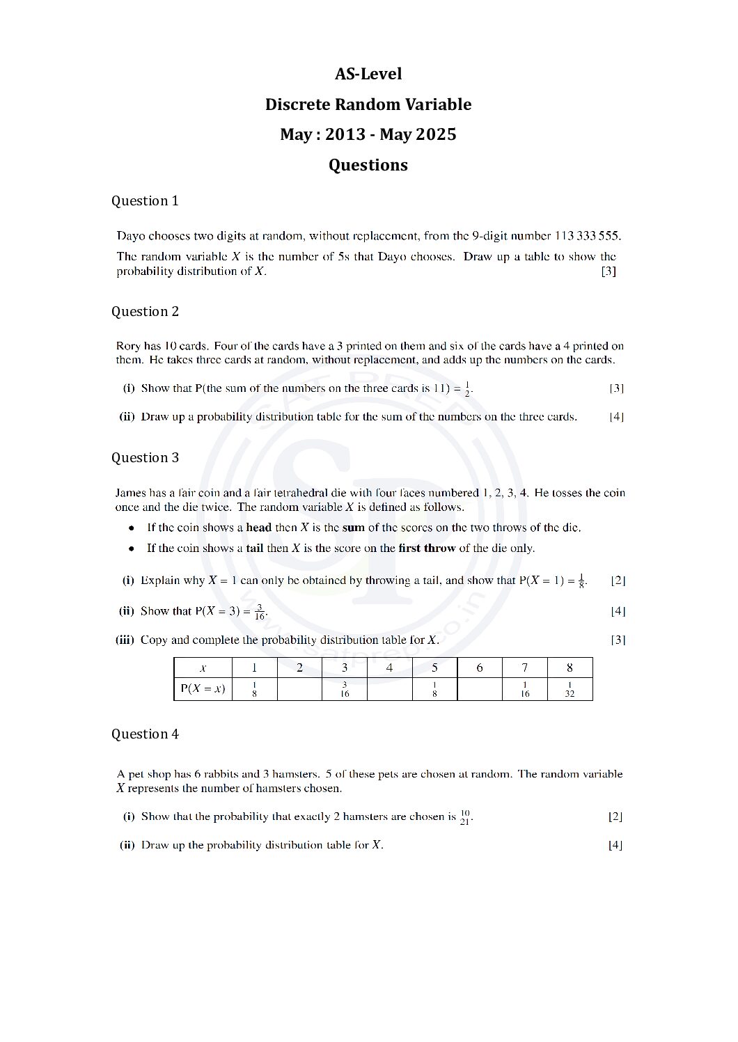 This post is about questions of Discrete Random Variable from past papers. In this post questions are from May 2013 to May 2025 paper. By this post students will come to know variety of questions asked in previous year papers. The questions type in this post is calculator . www.cie.org.uk