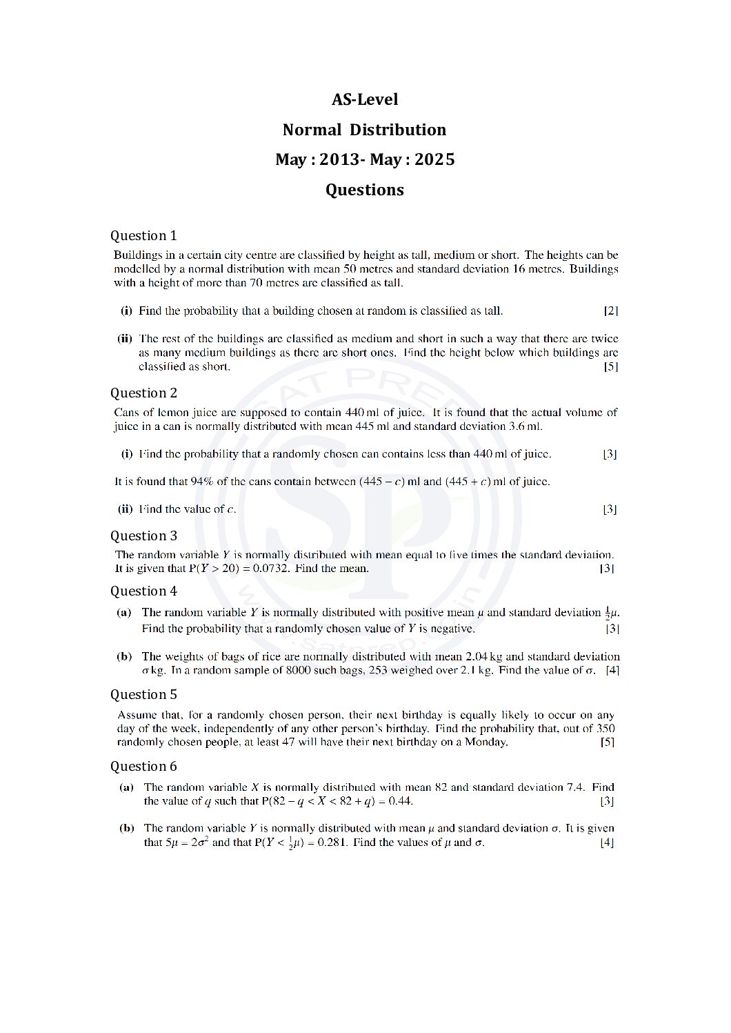This post is about normal distribution questions of past papers. In this post questions are from different paper from May 2013 to May 2025. By this post students will come to know variety of questions asked in previous year papers. The questions type in this post is calculator CIE Paper t