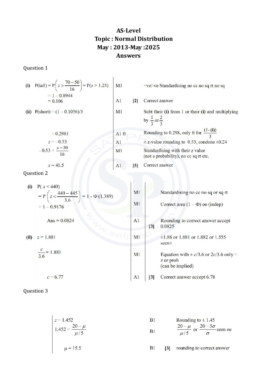 Question of normal distribution are from past papers. In this post provide answer of questions are from different paper from May 2013 to May 2025. Hence, students will come to know variety of questions asked in previous year papers. Also it will useful while practice. CIAE